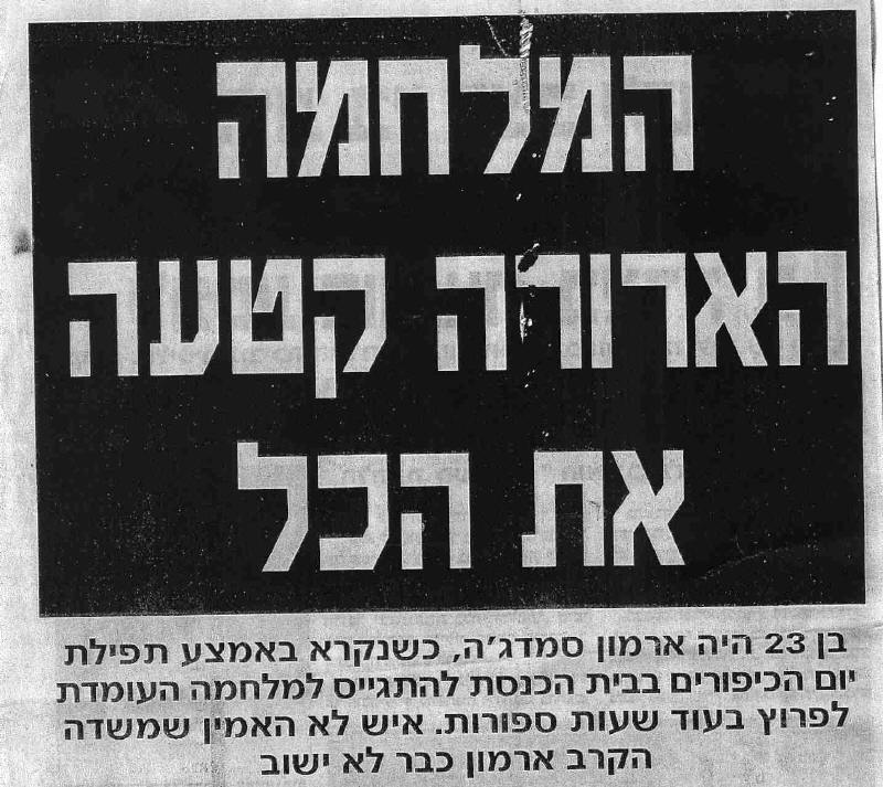 מלחמת יום הכיפורים מצאה אותו מתפלל בבית-הכנסת. לאחר שנפרד לשלום מאחיו המגויסים, הצטרף גם הוא ליחידתו, גדוד סיור 87, בה שימש כחמש צריח, ונשלח לגזרה המרכזית של חזית סיני. ביום י"ח בתשרי תשל"ד (14 באוקטובר 1973), לא הרחק מצומת הצירים "עכביש-כספי", השתתף ארמון בקרב שהווה נקודת מפנה במלחמה - קרב בו הושמדו כ- 250 טנקים של האויב. הגדוד של ארמון השמיד כ- 25 טנקים, אך המחיר היה כבד. הנגמ"ש של ארמון נפגע מטיל מצרי והוא נהרג. הוא הובא למנוחת-עולמים בבית-העלמין בכפר ורבורג. השאיר אחריו הורים ושלושה אחים. לאחר נופלו הועלה לדרגת סמל.