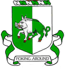 charged with a trotting boar hog, tusks exposed with the shield colors again